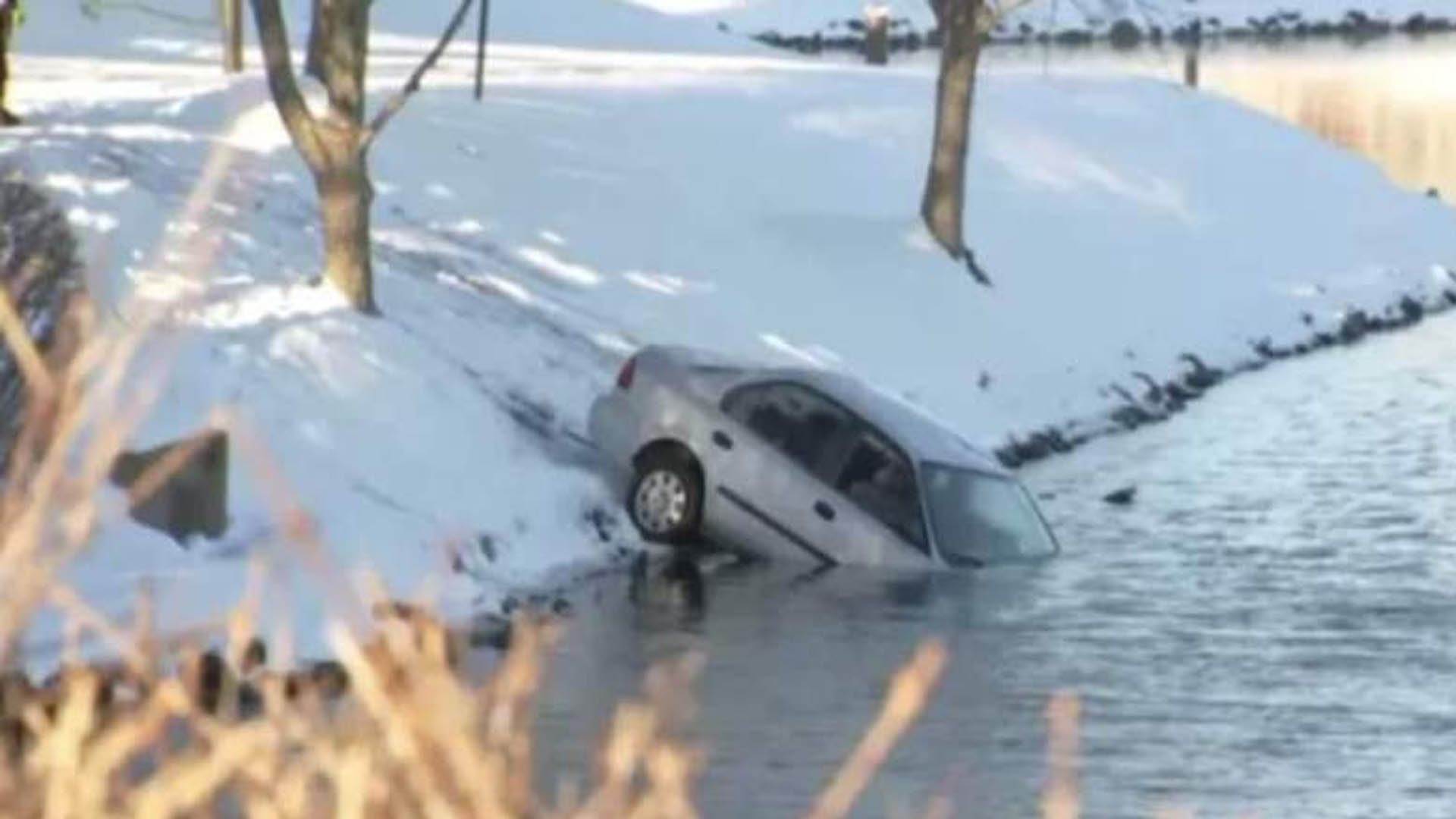कार हिउँका कारण चिप्लिएर पाेखरीमा पुगेकाे बताइएकाे छ ।