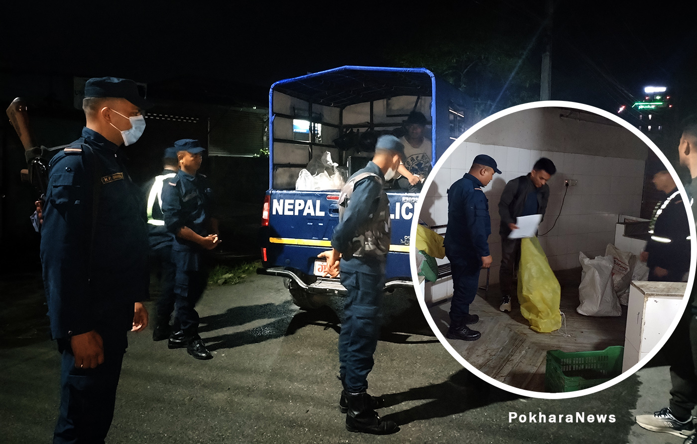 पोखरामा मरेका खसी काटिरहेको अवस्थामा ५४ केजी मासुसहित २ पक्राउ